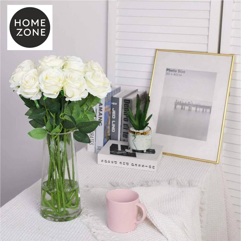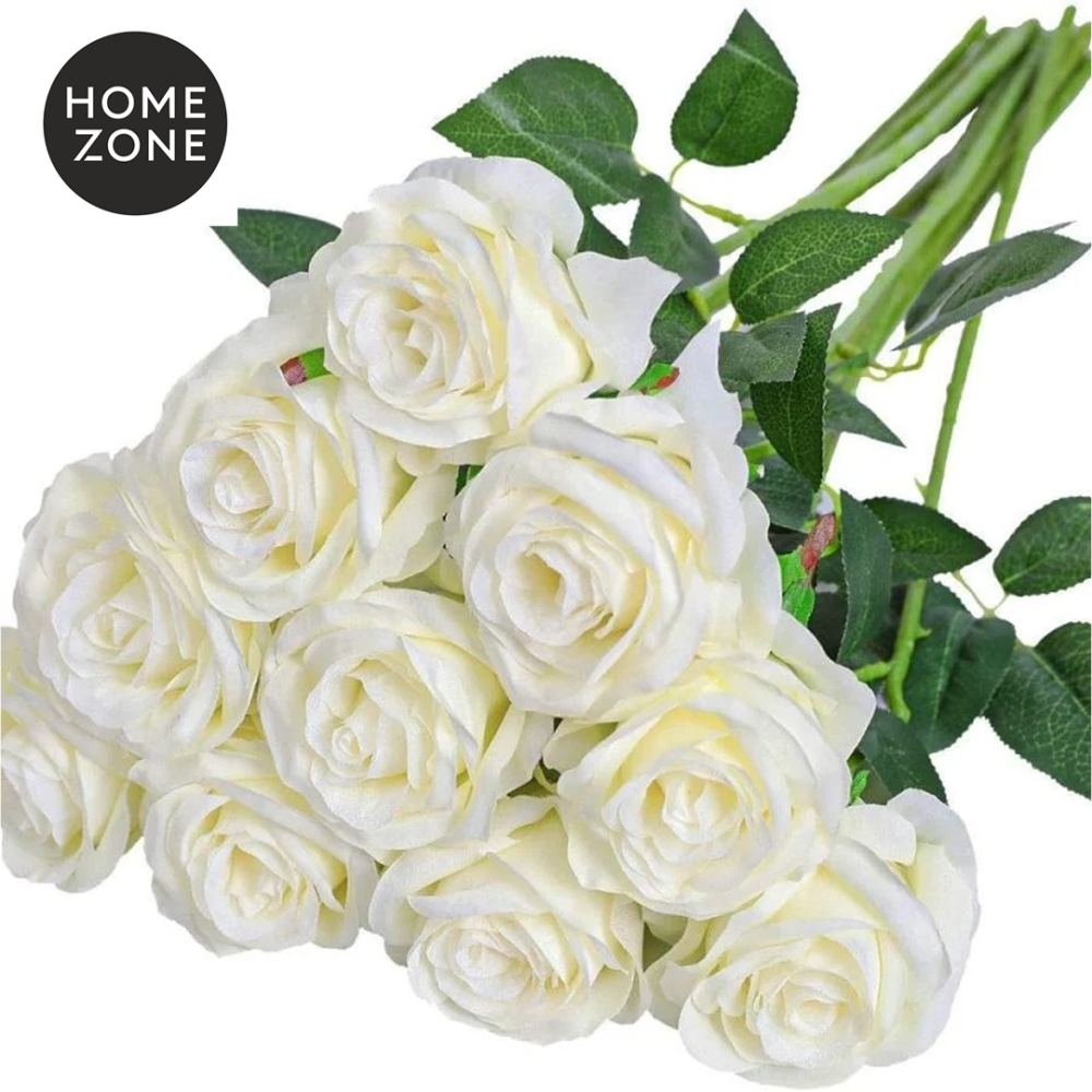 باقة 10 زهور ورد اصطناعي من الحرير الأبيض، تتميز بألوان نابضة بالحياة ومظهر طبيعي يدوم طويلًا، تضيف لمسة أناقة وجمال لأي مكان بدون الحاجة للعناية المستمرة.