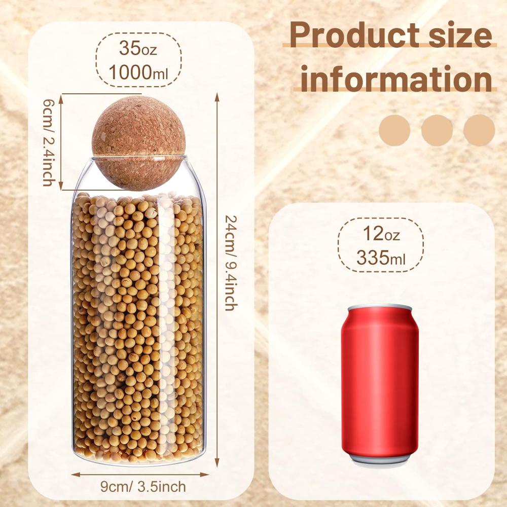- Practical and Beautiful: these glass bottles with cork have obvious glass lines and a wide mouth design, suitable for you to use them to store spices, cookies, coffee beans, cereals, seasonings, candy and more, also can be widely applied as a contain